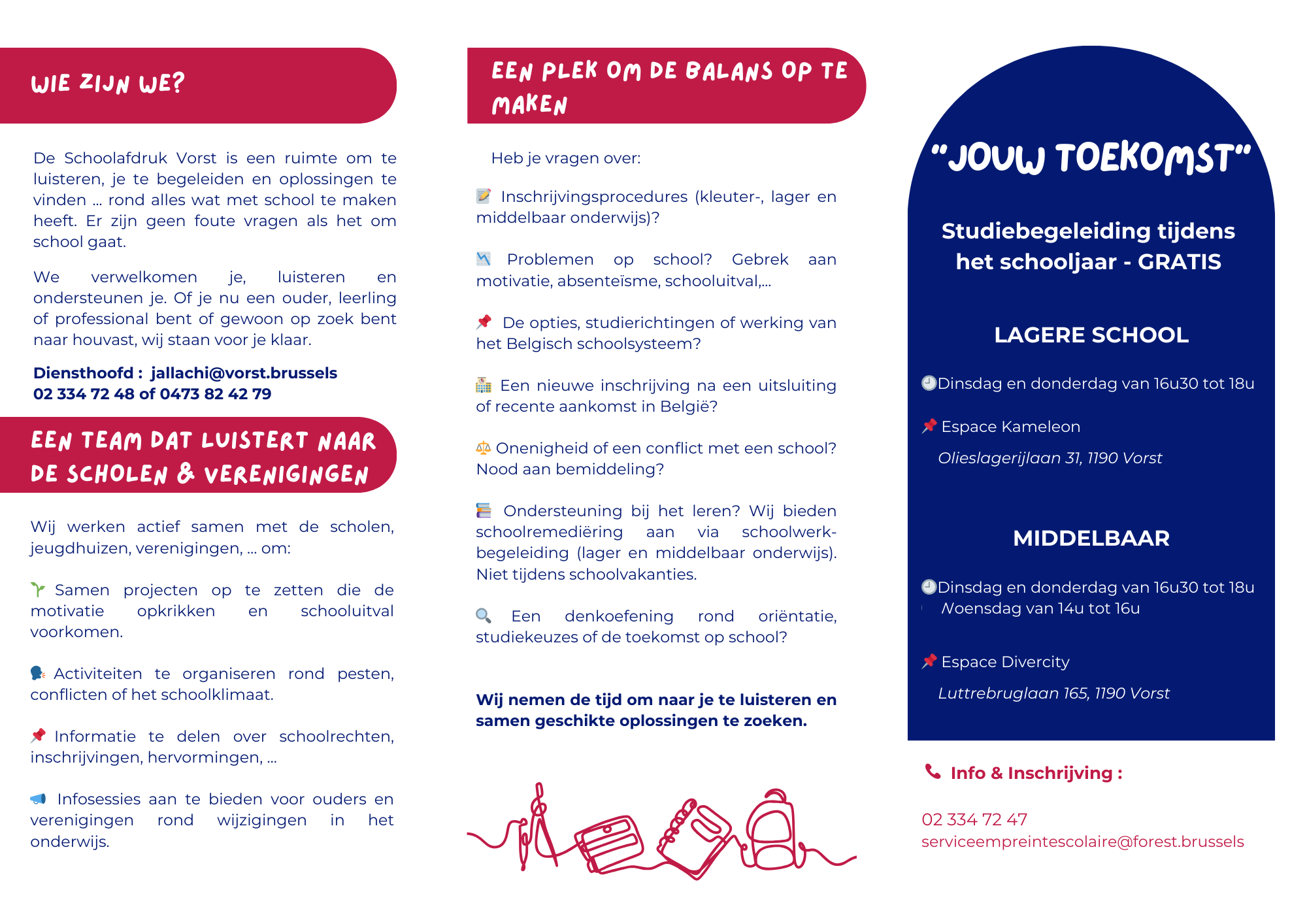 - De jongere en/of zijn ouders ondersteunen bij administratieve formaliteiten zoals inschrijving, bemiddeling, beroepsprocedures, ...